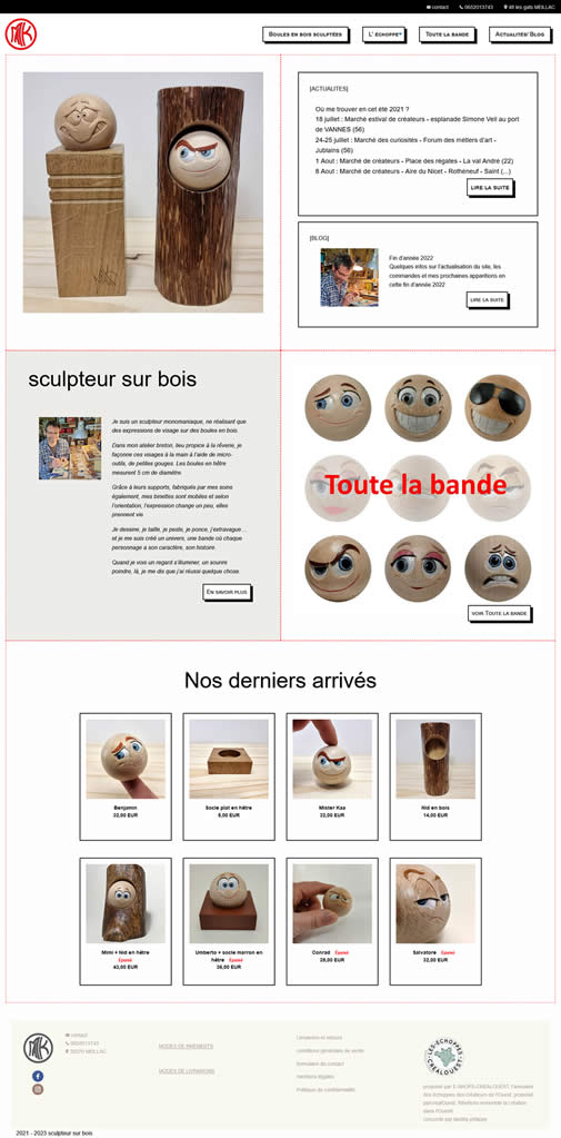 Un modèle unique personnalisé, une structure de site au design sobre et épuré conçu pour mettre en valeur le travail du créateur.