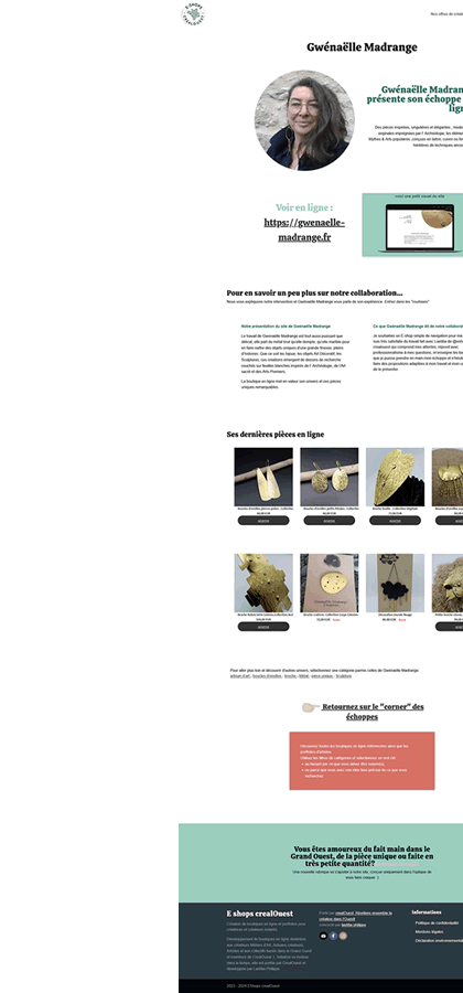 Développement de Boutiques en ligne pour les créateurs et créatrices éclairé(e)s du Grand Ouest membres de la plateforme crealouest.fr
